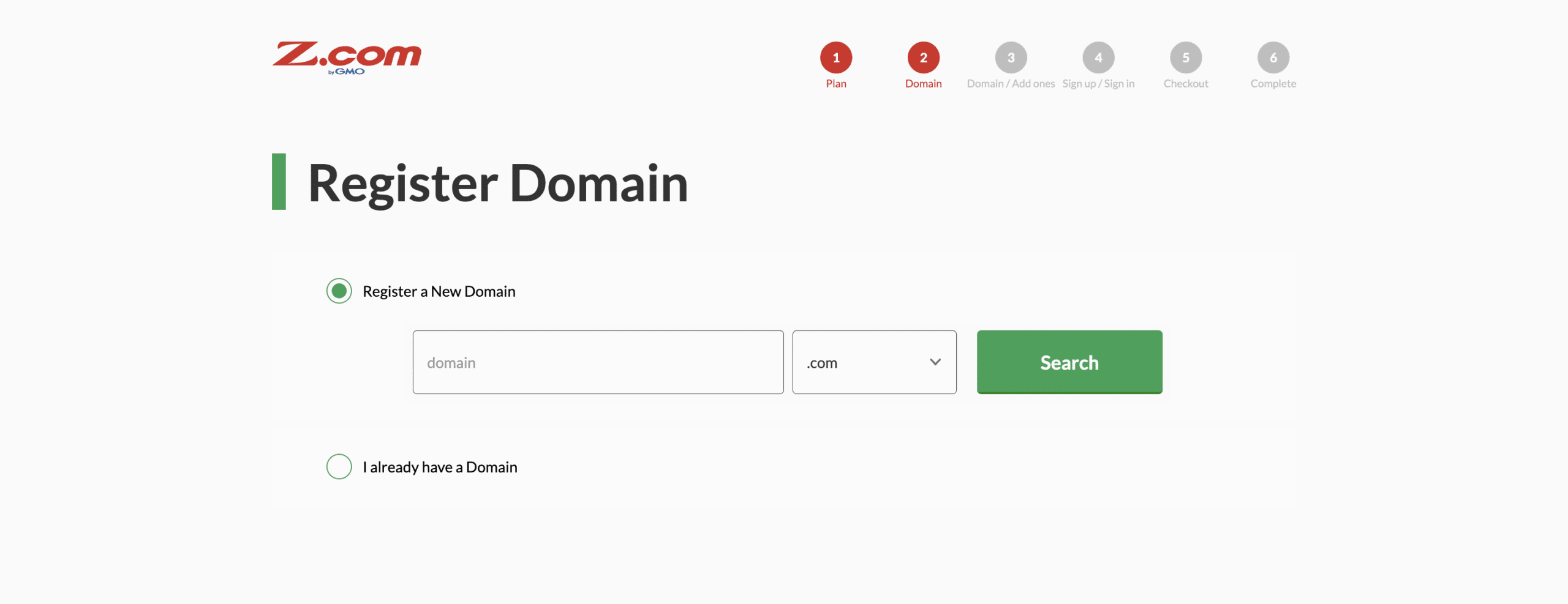 Step 3: Go ahead and choose to Register a New Domain, or I already have a Domain.