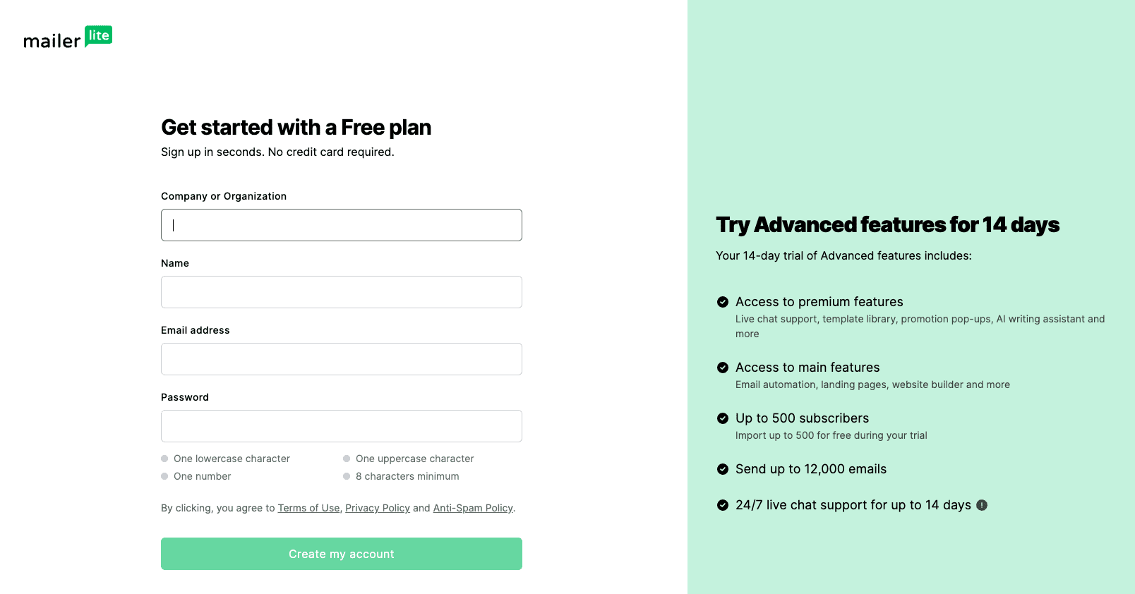 Start with the free MailerLite account